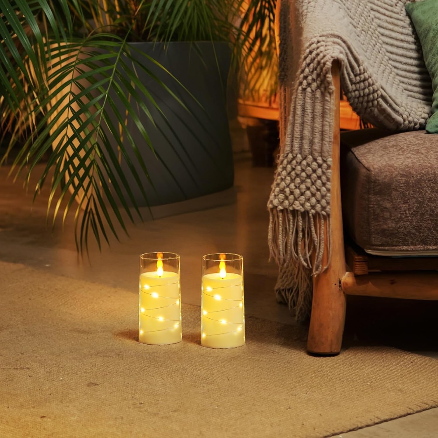 - Charming String Light Design: These Homemory flameless candles are creatively wound with fairy lights to emit a bright and beautiful light, the embedded string lights are perfect for use in decorative scenes such as home, wedding, Halloween, Thanksgiving, Christmas, etc.