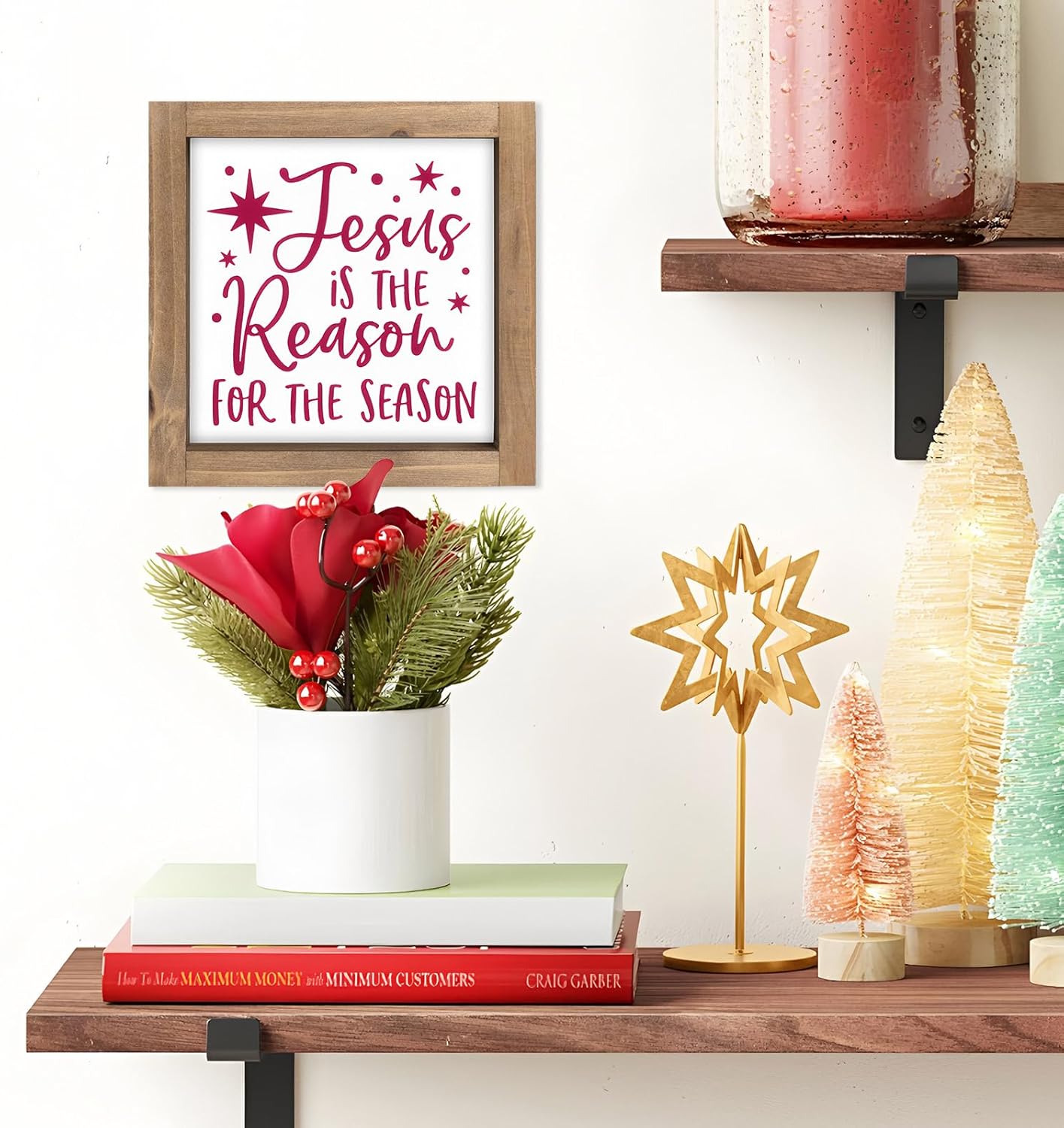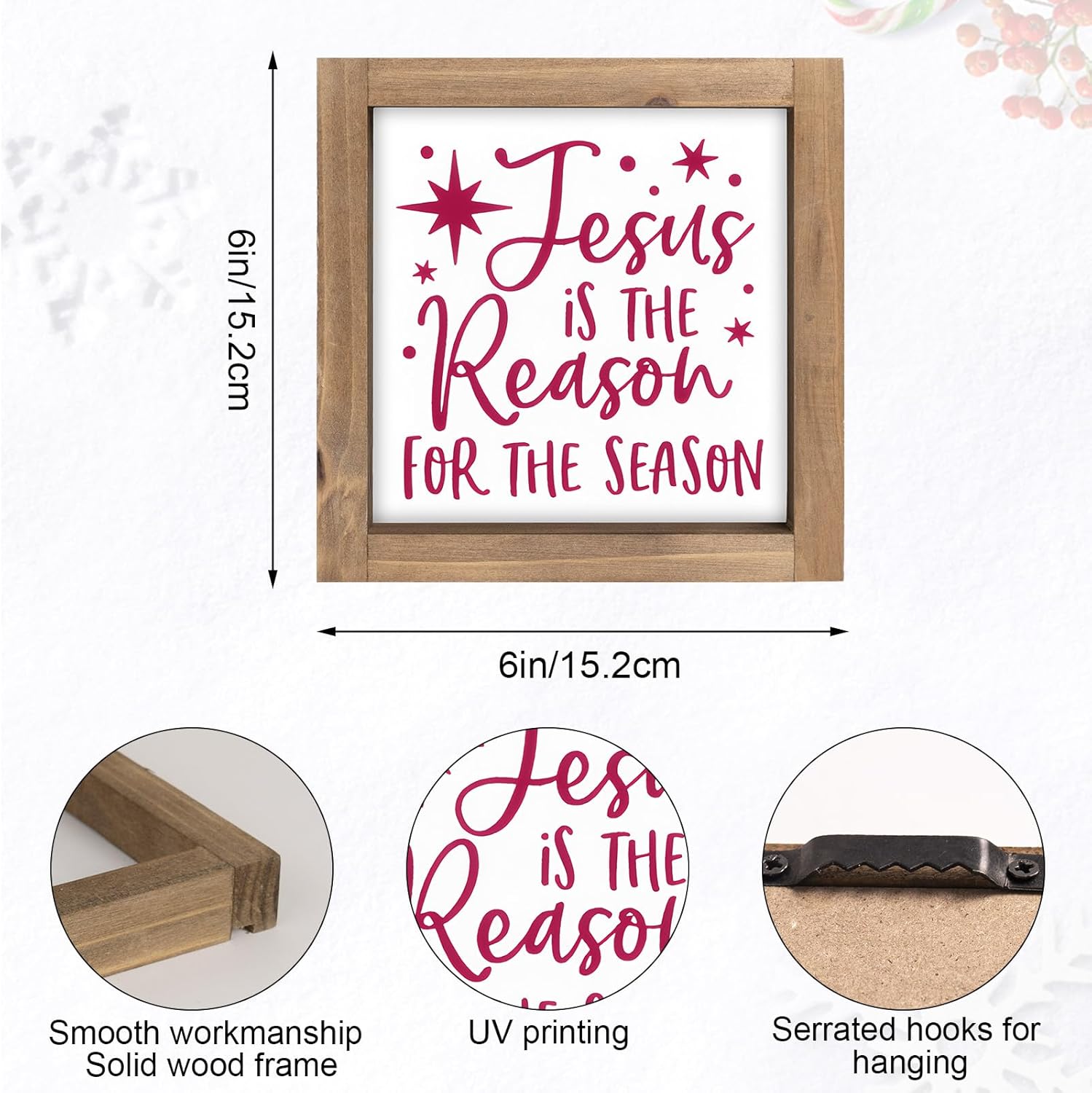 Jesus Is The Reason for The Season Sign, Wooden Nativity Christmas Decor, Holiday Decorative Signage Table Shelf Desk Mantel Tiered Tray Christian Wall Art Rustic Farmhouse Home Decorations