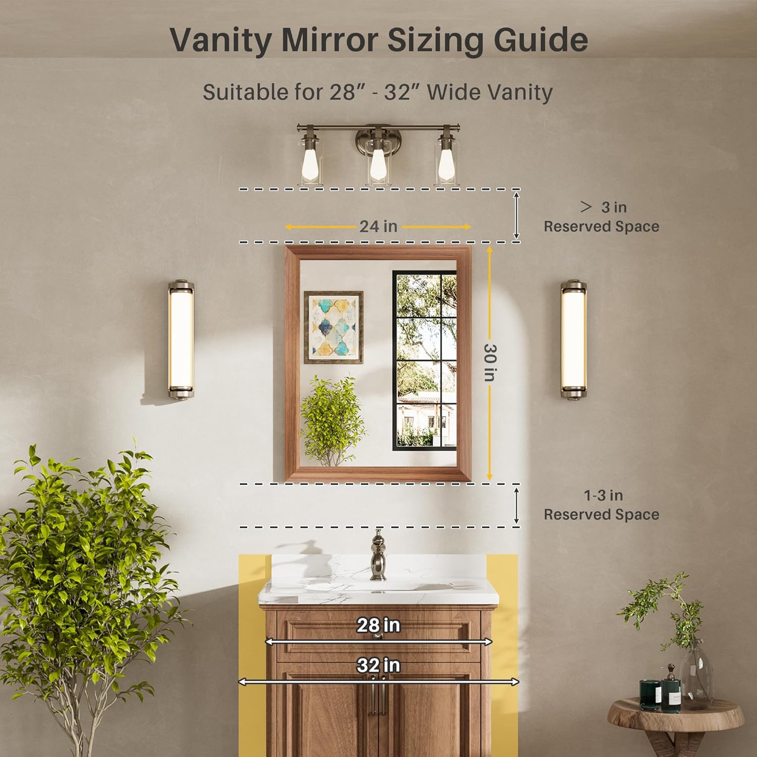 - Elegant & Durable Metal Framed Mirror : Our beveled frame artfully fuses walnut wood grain with aluminum alloy, crafting a classic rustic aesthetic. Both beautiful and functional, it resists rust and bending. Its elegant design suits any decor, enhancing your space’s charm.