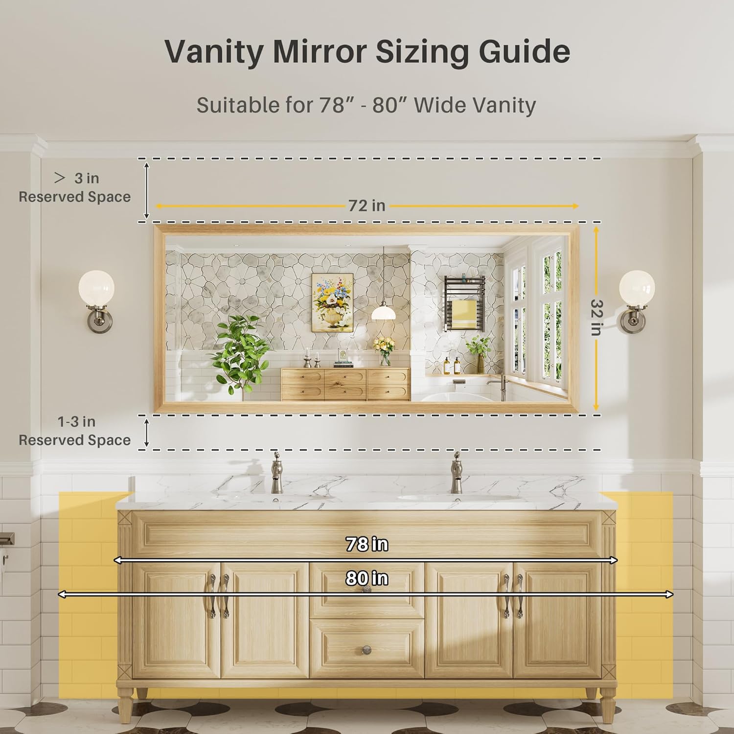 72x32 Inch Bathroom Mirror for Wall, Anti-Rust Oak Wood Grain Metal Framed Bathroom Mirrors for Over Sink,Rectangler Mirrors for Bathroom Vanity, Farmhouse, Bedroom, Living Room, Entryway Decor