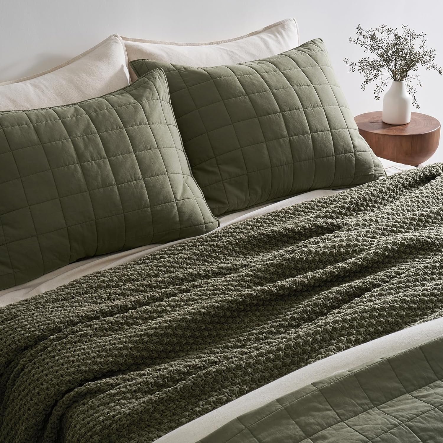 EVERGRACEHOME Chunky Chenille Knit Throw Blanket for Couch, Soft Luxurious Oversized Queen Moss Stitch Blanket for Bed, Large Cozy Farmhouse Knitted Throw for Sofa, Olive Green, 90" x 90"