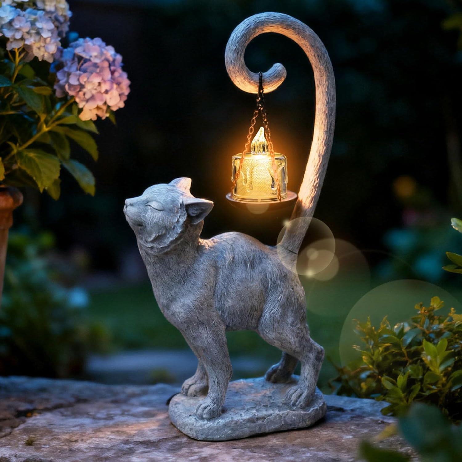 Standing Cat Garden Statue Candle Holder for Outdoor Garden Patio and Indoor Decor for Cat Lovers Women and Home Ambiance Grey Stone