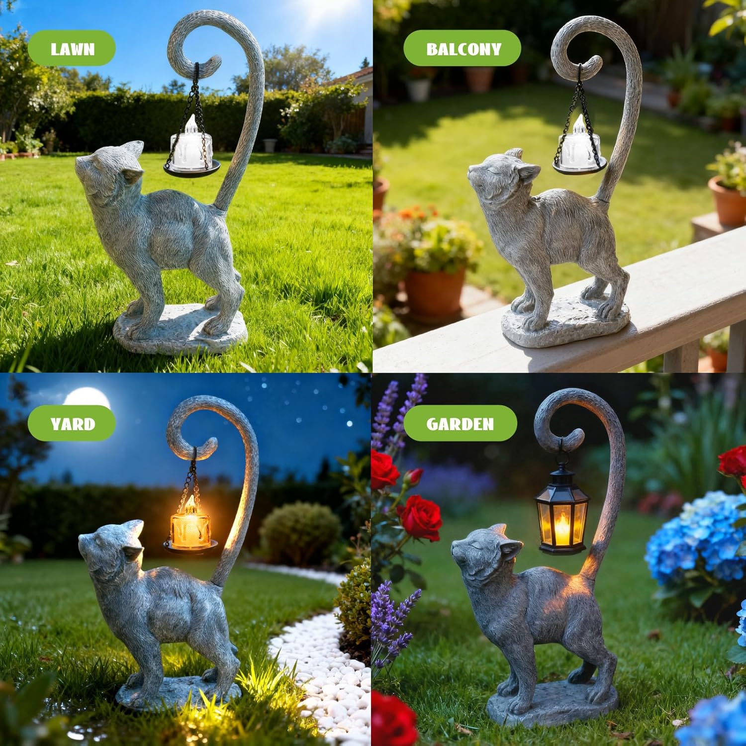- šæ Versatile Indoor and Outdoor Placementļ¼Designed for flexibility, this cat garden statue shines in gardens, patios, yards, or living rooms. Whether as front yard decor or a chic indoor accent, it withstands elements to beautify your space year-round. Its compact size fits seamlessly into garden decorations or as patio decor.