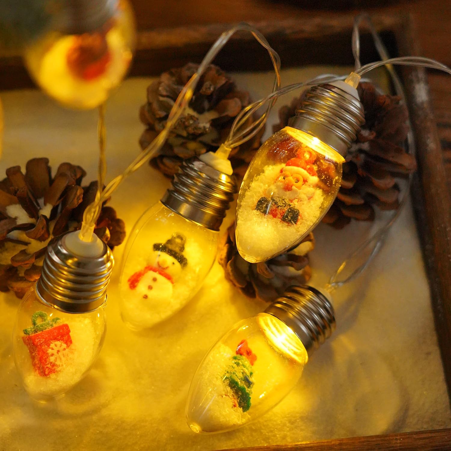 Christmas Snow Globe String Lights Indoor Decorations,10 LED Clear Bulbs Christmas Tree Snow Globe String Lights with Five Dolls for Bedroom Party Vintage Christmas Decor(6.6FT)