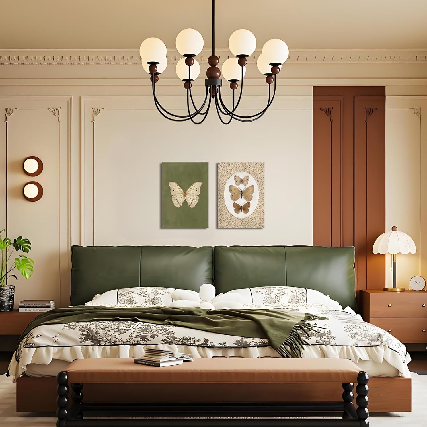 Framed Butterfly Wall Art 2Pcs,Vintage Classic Prints, Nature Butterfly Canvas Painting,Rustic Beige and Dark Moody Green Poster Boho Wall Decor for Living Room, Bedroom,Gallery Home Decor 12x16IN